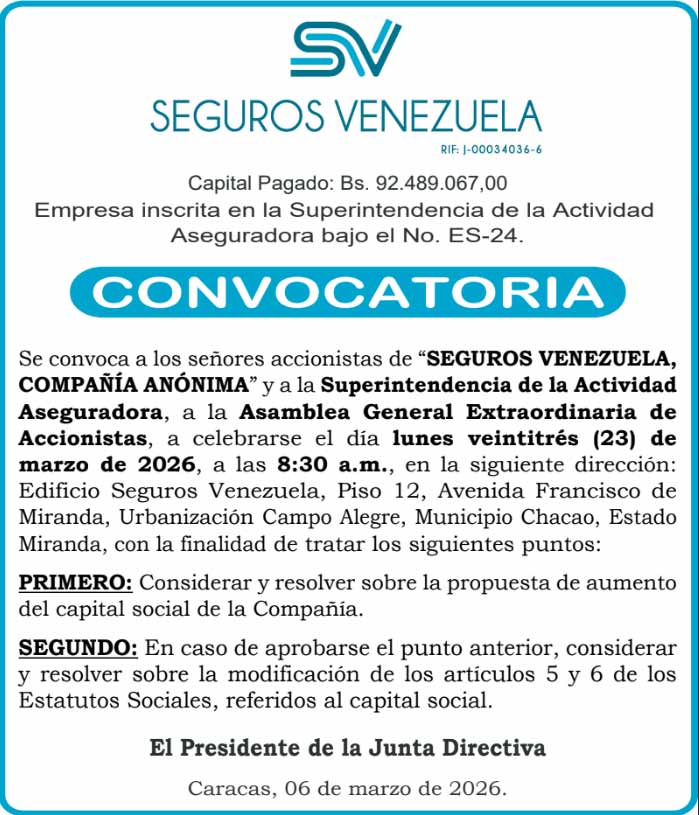 CONVOCATORIA ASAMBLEA EXTRAORDINARIA DE ACCIONISTAS 23-03-2026, 8:30 am